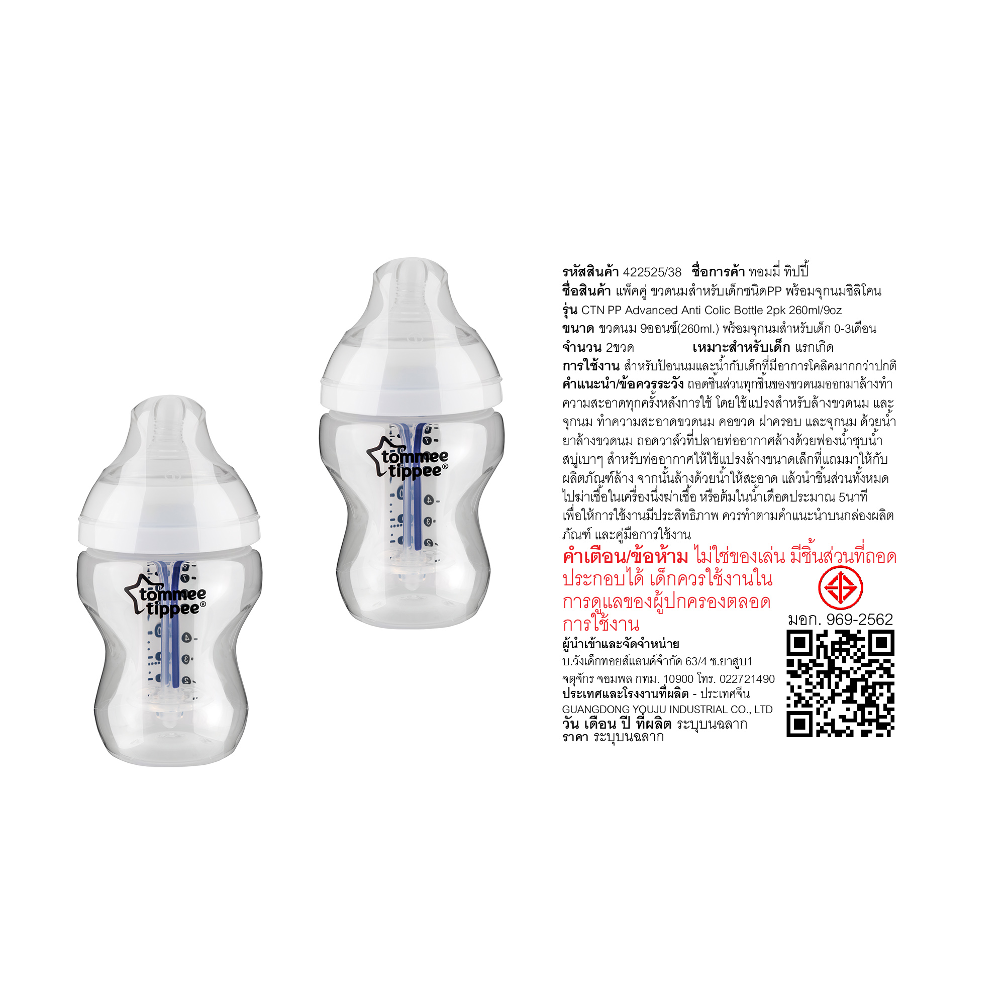จรก. ทอมมี่ ทิปปี้ แพ็คคู่ ขวดนม สำหรับเด็กที่มีปัญหาเรื่องอาการโคลิคมากกว่าปกติ รุ่น ใกล้เคียงธรรมชาติ ขนาด 9 ออนซ์ พร้อมจุกนมสำหรับเด็กแรกเกิด