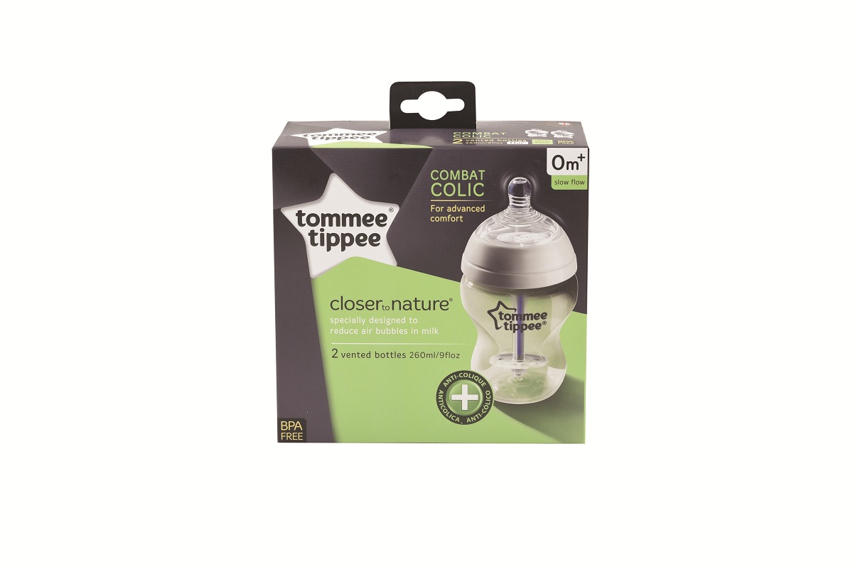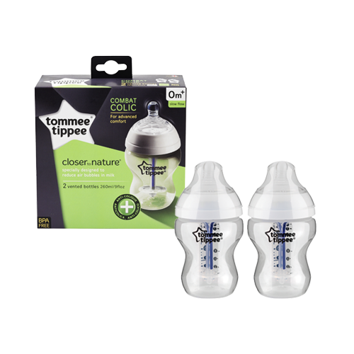 แพ็คคู่ ขวดนม ทอมมี่ ทิปปี้ สำหรับเด็กที่มีปัญหาเรื่องอาการโคลิคมากกว่าปกติ รุ่น Closer to Nature ขนาด 9 oz พร้อมจุกนมสำหรับเด็กแรกเกิด