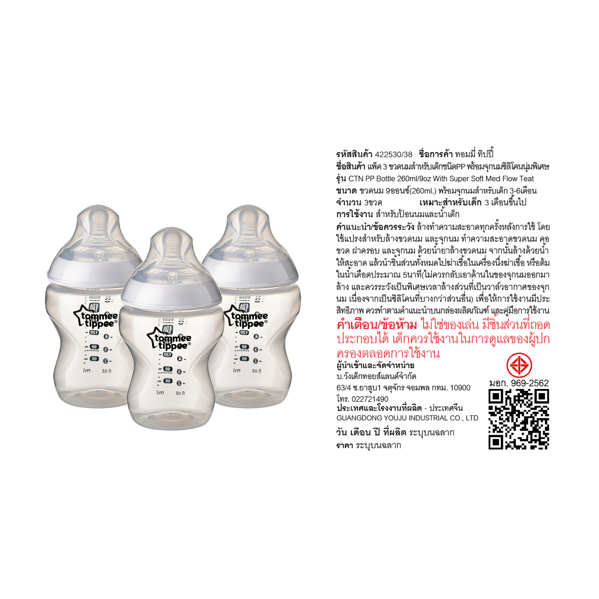 จรก. ทอมมี่ ทิปปี้ แพ็ค3 ขวดนม รุ่น ใกล้เคียงธรรมชาติ ขนาด 9 ออนซ์ พร้อมจุกนมสำหรับเด็กแรกเกิด