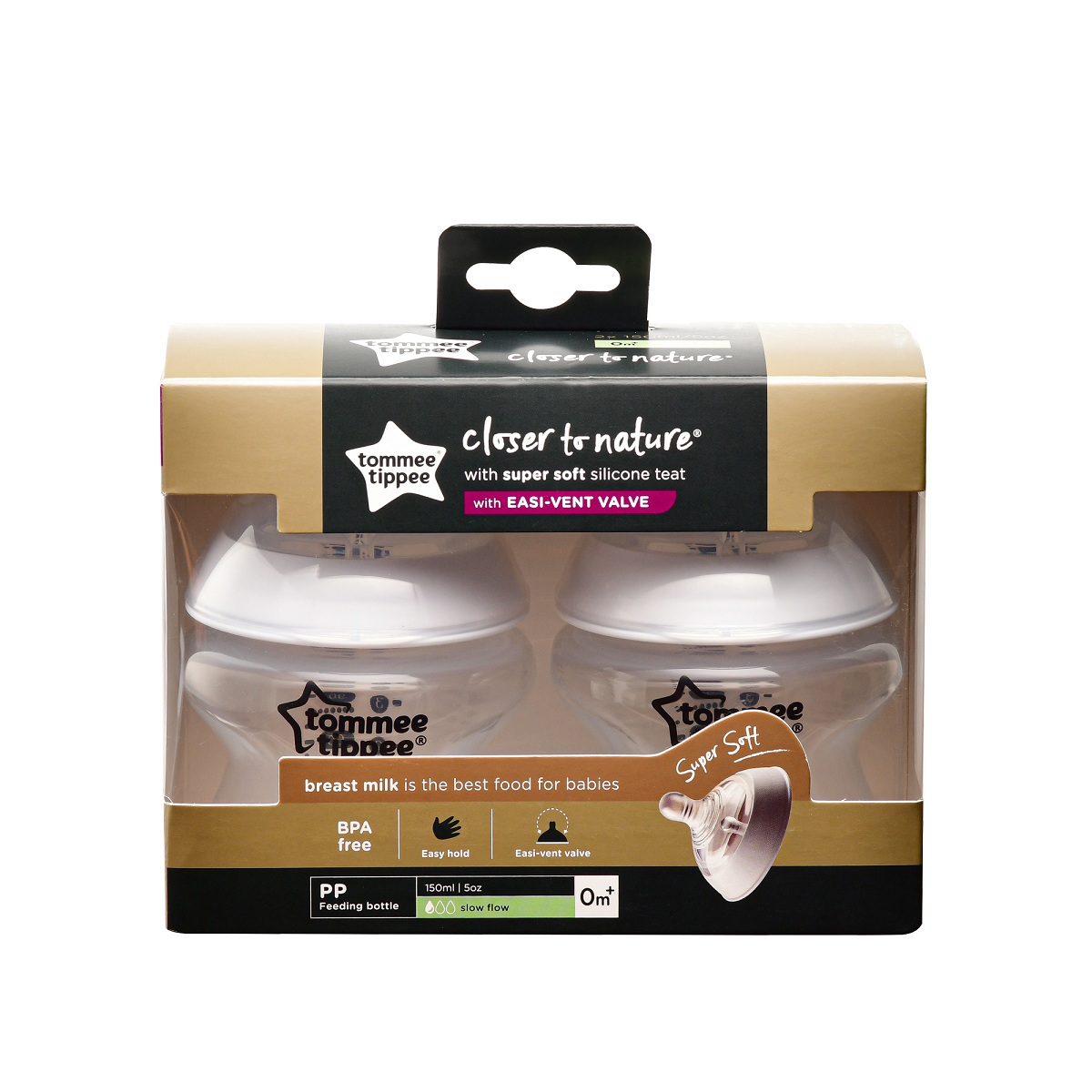 ทอมมี่ ทิปปี้ แพ็คคู่ขวดนม รุ่น ใกล้เคียงธรรมชาติ ขนาด 5 ออนซ์ พร้อมจุกนมสำหรับเด็กแรกเกิด