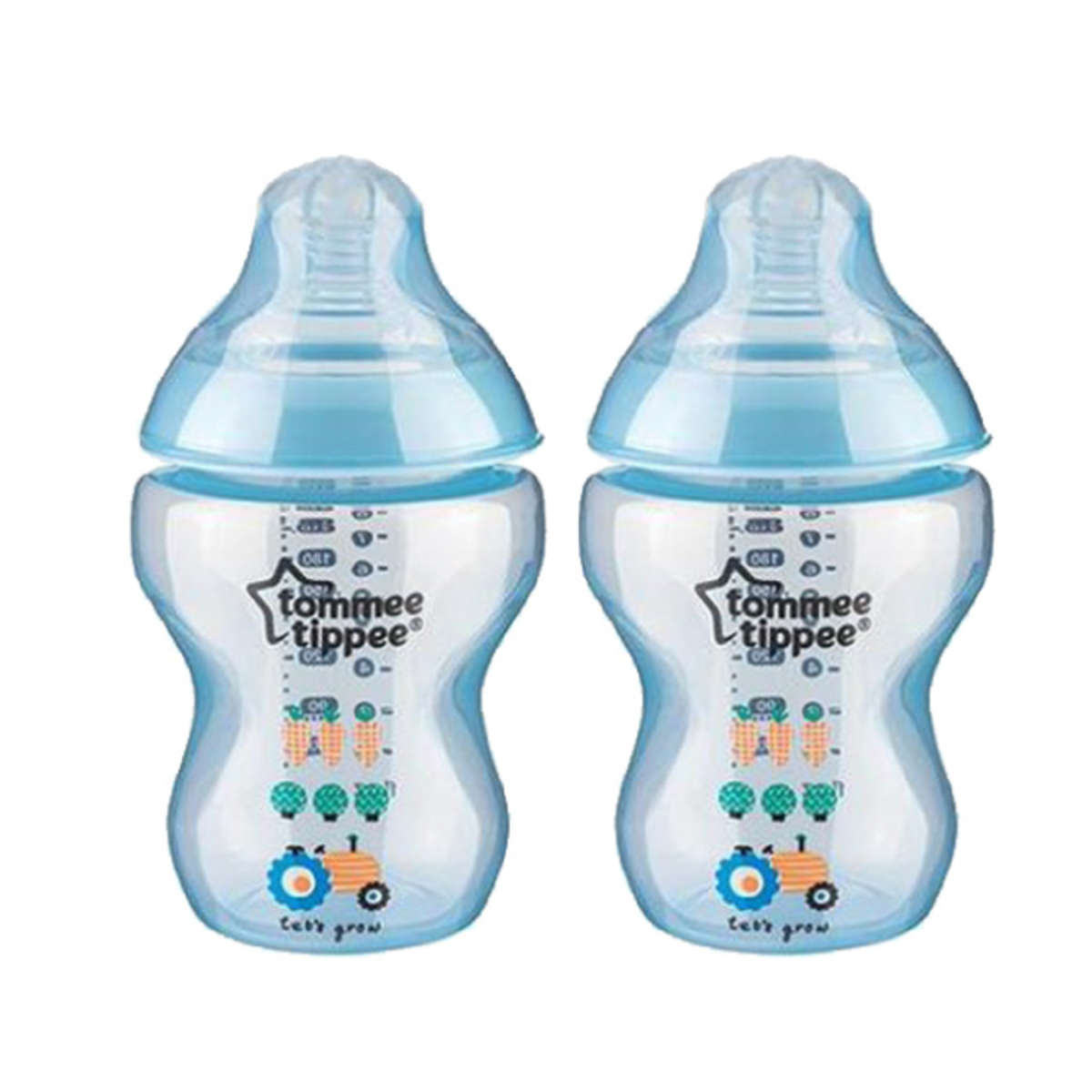 แพ็คคู่ขวดนม ทอมมี่ ทิปปี้ รุ่น Closer to Nature ขนาด 9 oz รุ่นสีฟ้า พร้อมจุกนมสำหรับเด็กแรกเกิด